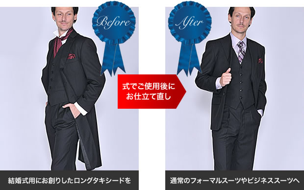 | ロングタキシードから通常のブラックスーツへのお仕立て直し代金 | 15,000円 |