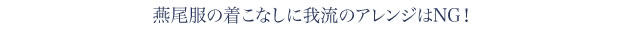 | アクセサリー | 【カフス】…白蝶貝が最適。 【チーフ】…シルクまたは本麻の白無地。 |